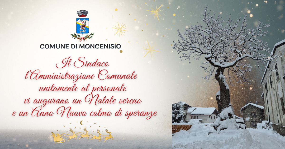 Il Sindaco, l’Amministrazione Comunale e tutto il personale del Comune di Moncenisio augurano a cittadine e cittadini un Natale sereno e un Anno Nuovo colmo di speranze, da vivere insieme, con fiducia e spirito di comunità.